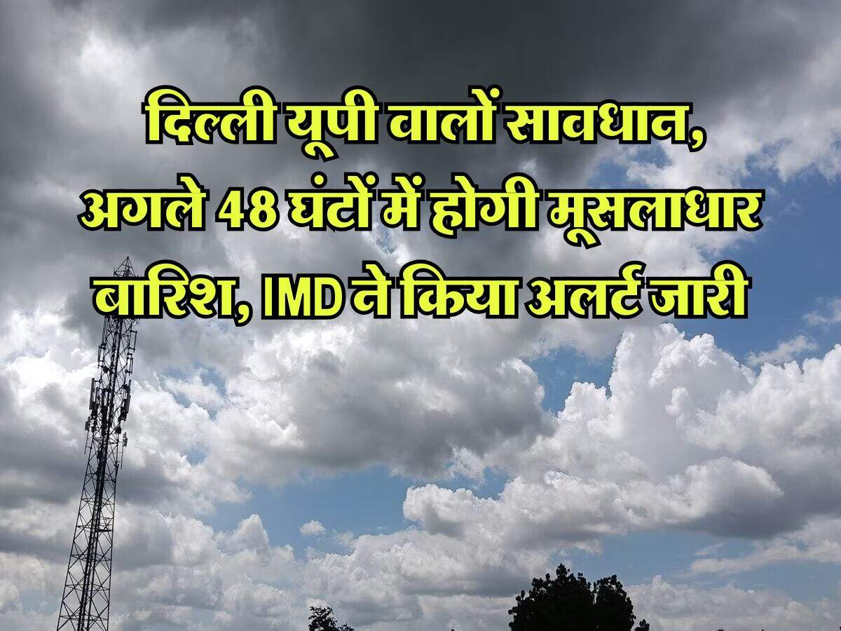 Delhi Up me barish : दिल्ली यूपी वालों सावधान, अगले 48 घंटों में होगी मूसलाधार बारिश, IMD ने किया अलर्ट जारी