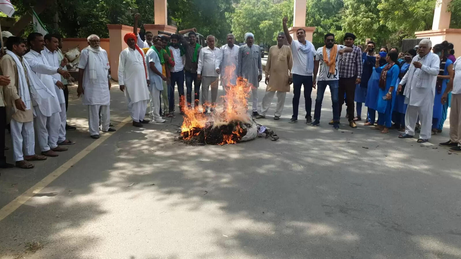 लघु सचिवालय के बाहर किसानों ने फूंका सीएम और डिप्टी सीएम का पुतला