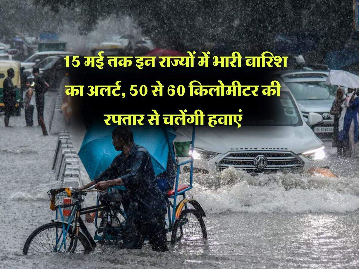 IMD rain alert : 15 मई तक इन राज्यों में भारी बारिश का अलर्ट, 50 से 60 किलोमीटर की रफ्तार से चलेंगी हवाएं