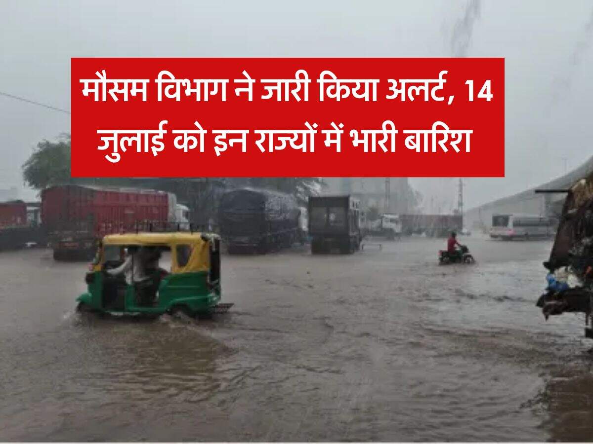 imd weather forecast : मौसम विभाग ने जारी किया अलर्ट, 14 जुलाई को इन राज्यों में भारी बारिश
