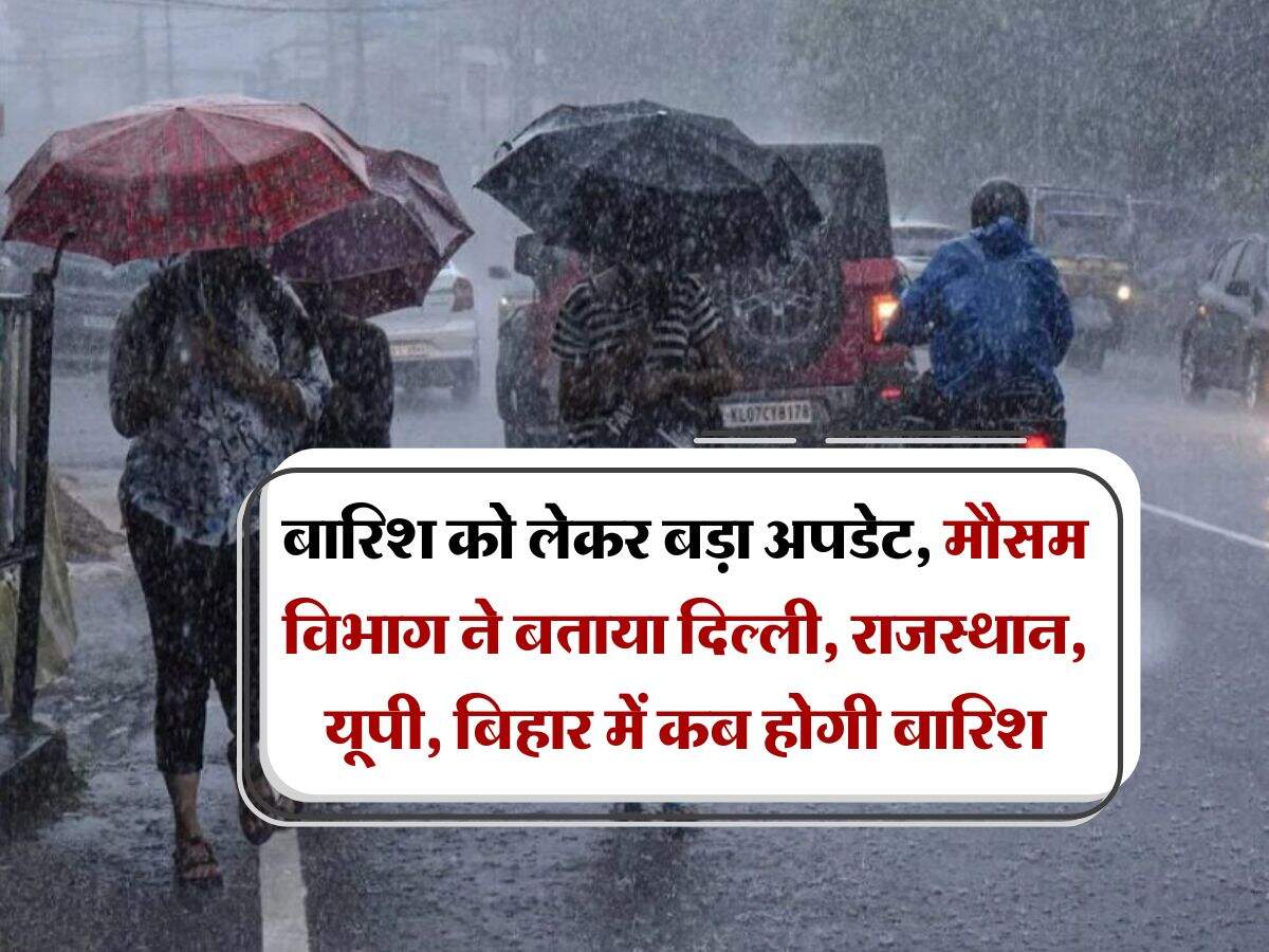 Rain Alert : बारिश को लेकर बड़ा अपडेट, मौसम विभाग ने बताया दिल्ली, राजस्थान, यूपी, बिहार में कब होगी बारिश