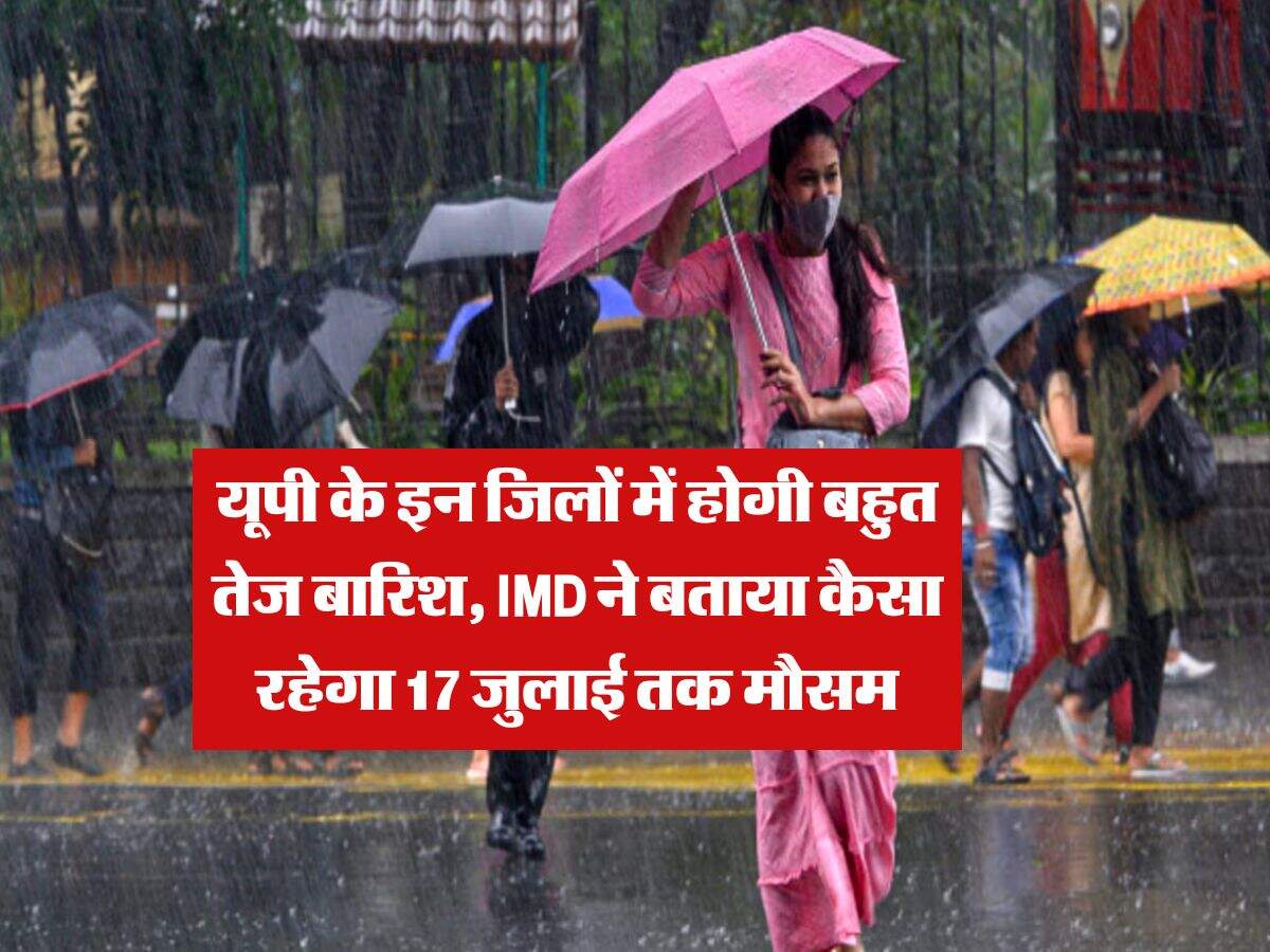 UP Weather Update : यूपी में पिछले काफी समय से मौसम में बदलाव देखने को मिल रहा है। यहां पर झमाझम बारिश होने की संभावना जताई जा रही है। बारिश होने की वजह से तापमान में गिरावट (UP Ka mausam) देखी जाने की संभावना लगाई जा रही है। मौसम विभाग ने अलर्ट जारी करते हुए बताया कि यूपी के इन जिलों में बहुत तेज बारिश होने की संभावना जताई जा रही है। आइए जानते हैं 17 जुलाई तक यूपी का मौसम कैसा रहने वाला है।