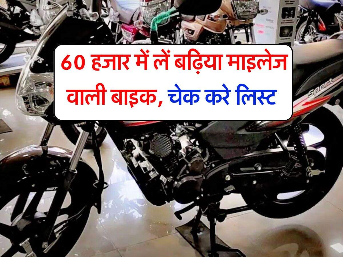 Top 100cc Bikes : 60 हजार में लें बढ़िया माइलेज वाली बाइक, चेक करे लिस्ट
