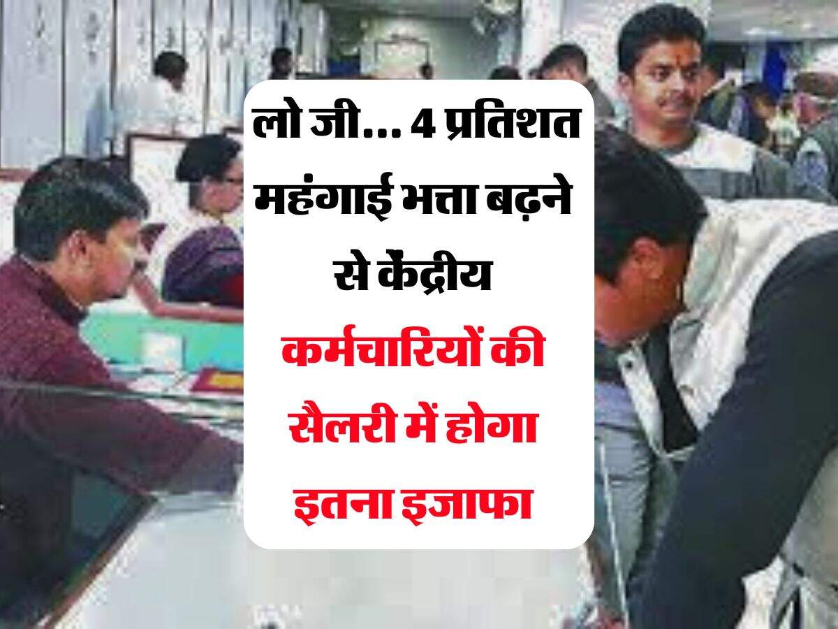 DA Hike : लो जी... 4 प्रतिशत महंगाई भत्ता बढ़ने से केंद्रीय कर्मचारियों की सैलरी में होगा इतना इजाफा