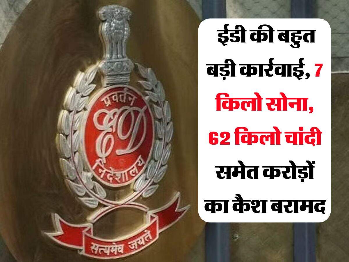 ED Raid : ईडी की बहुत बड़ी कार्रवाई, 7 किलो सोना, 62 किलो चांदी समेत करोड़ों का कैश बरामद