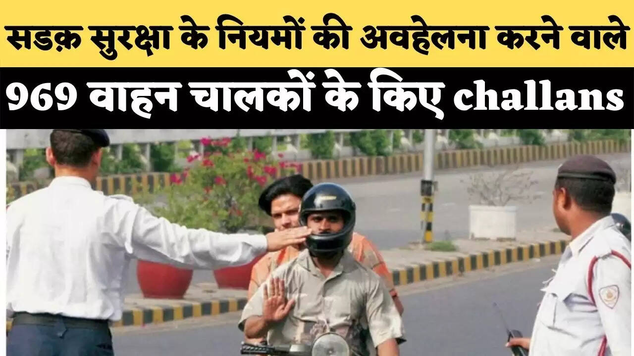 सडक़ सुरक्षा के नियमों की अवहेलना करने वाले 969 वाहन चालकों के किए challans