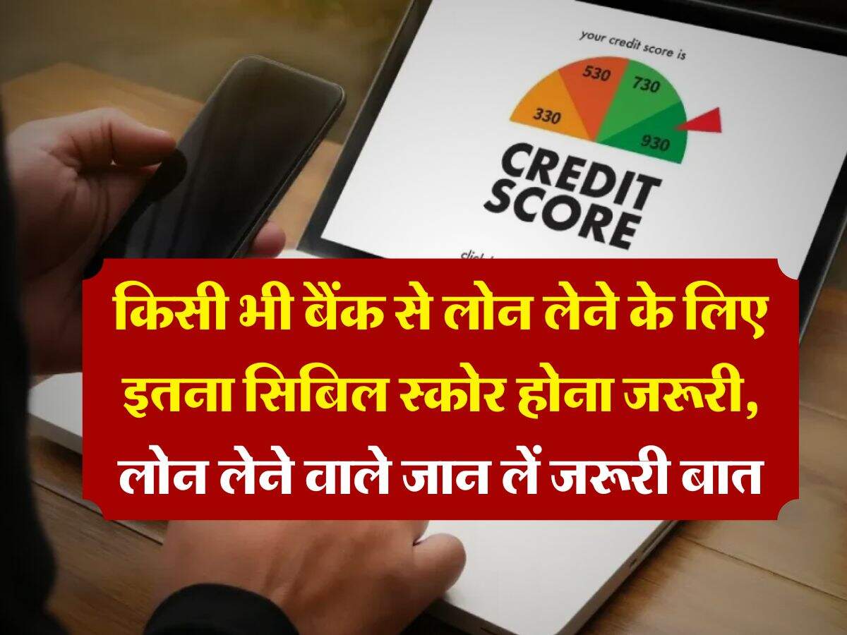 CIBIL Score : किसी भी बैंक से लोन लेने के लिए इतना सिबिल स्कोर होना जरूरी, लोन लेने वाले जान लें जरूरी बात