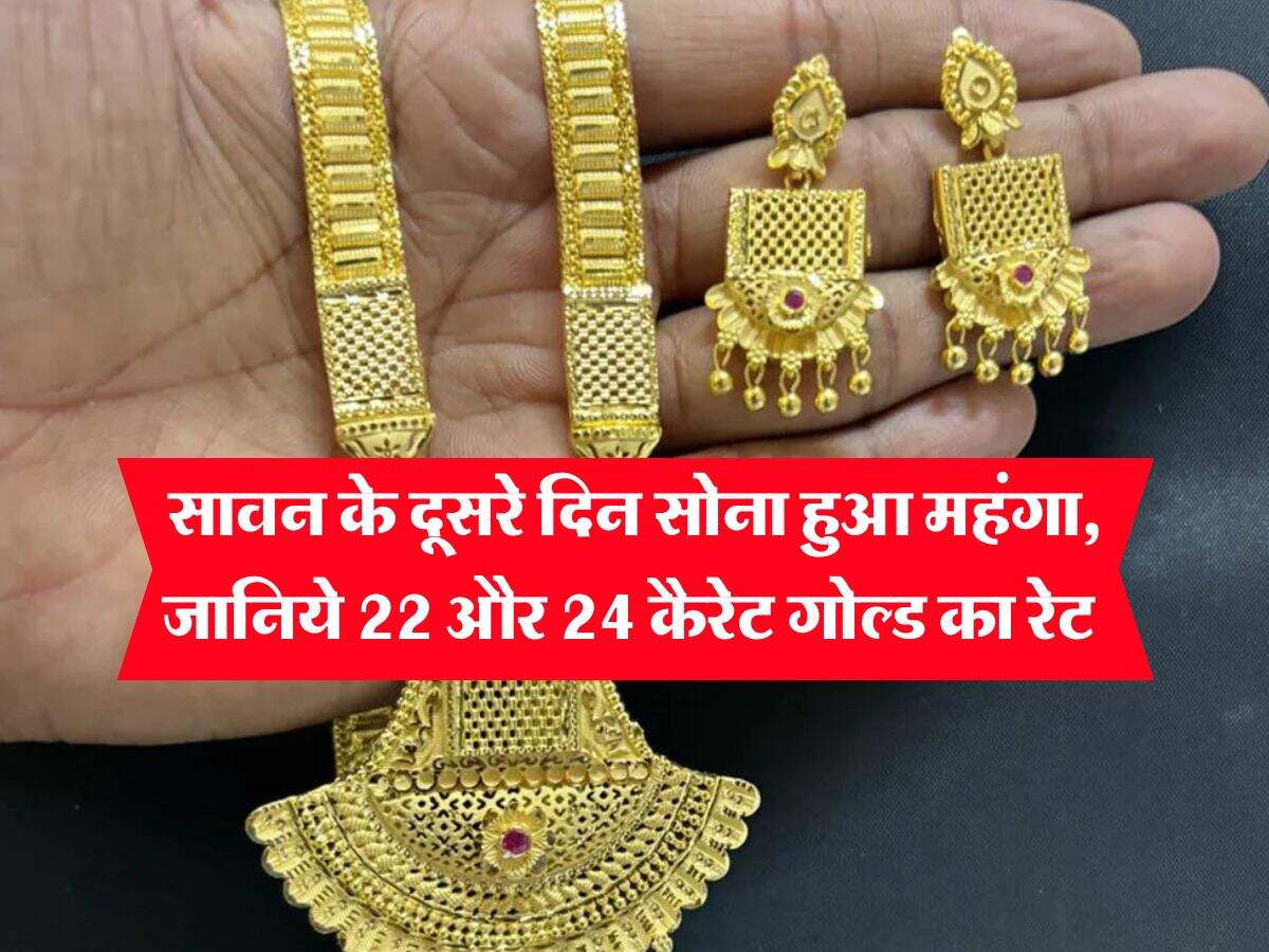 Gold Price : सावन के दूसरे दिन सोना हुआ महंगा, जानिये 22 और 24 कैरेट गोल्ड का रेट