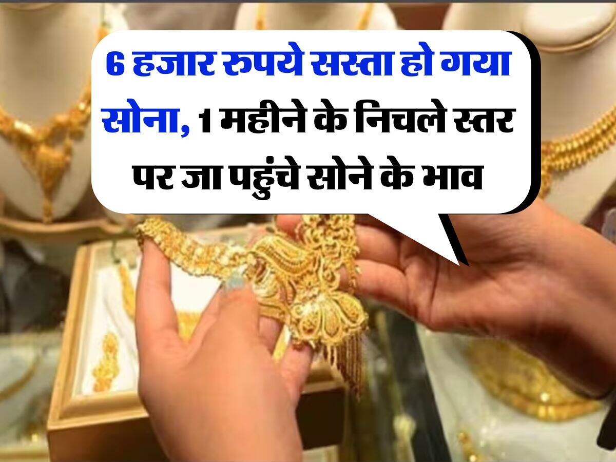 Gold Rate Down : 6 हजार रुपये सस्ता हो गया सोना, 1 महीने के निचले स्तर पर जा पहुंचे सोने के भाव