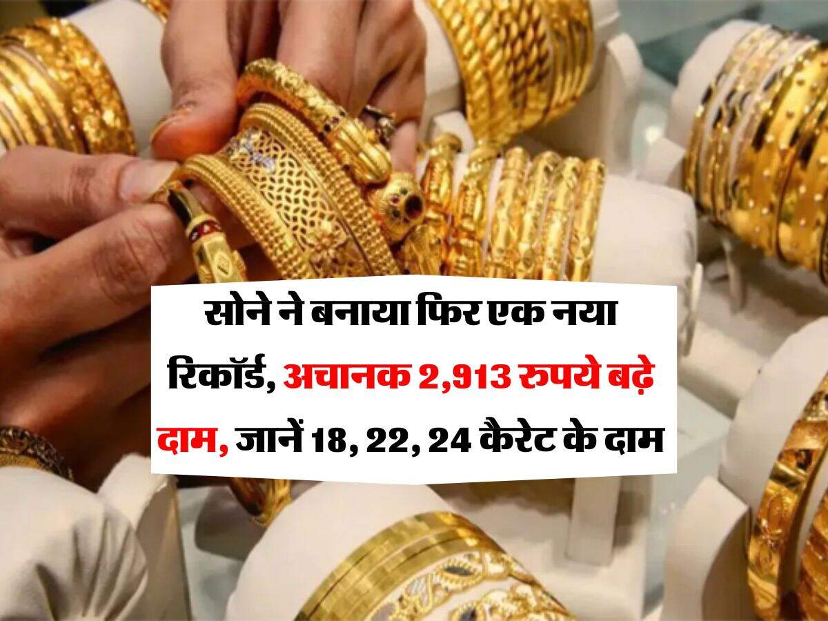 Gold Rate : सोने ने बनाया फिर एक नया रिकॉर्ड, अचानक 2,913 रुपये बढ़े दाम, जानें 18, 22, 24 कैरेट के दाम