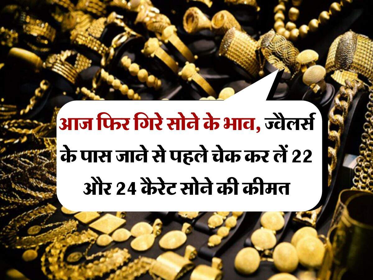 Gold Rate : आज फिर गिरे सोने के भाव, ज्वैलर्स के पास जाने से पहले चेक कर लें 22 और 24 कैरेट सोने की कीमत