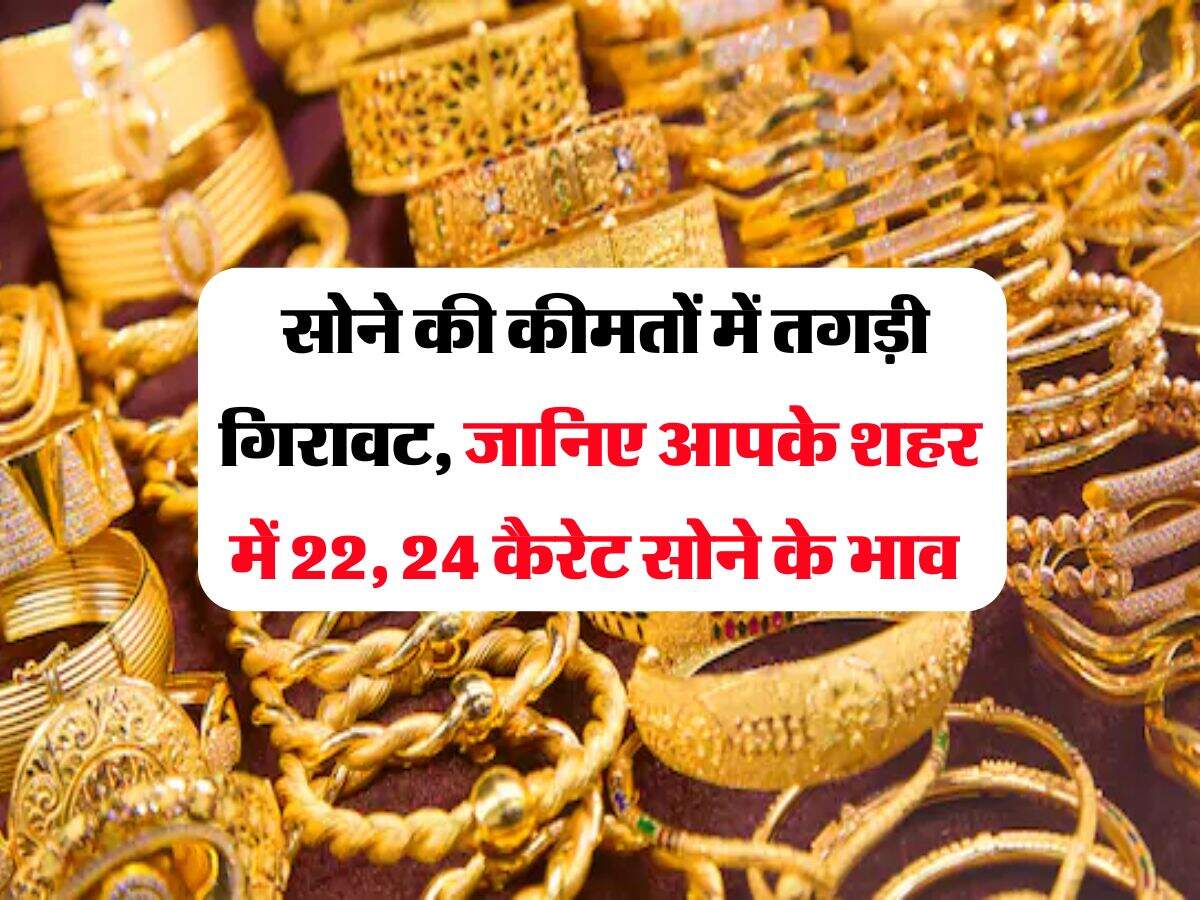 Gold Rate : सोने की कीमतों में तगड़ी गिरावट, जानिए आपके शहर में 22, 24 कैरेट सोने के भाव