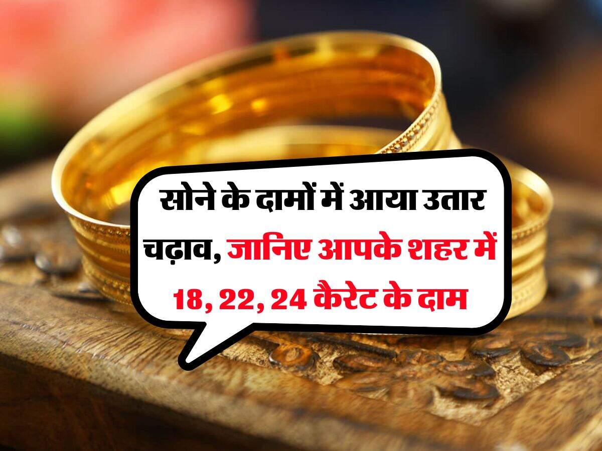 Gold Rate : सोने के दामों में आया उतार चढ़ाव, जानिए आपके शहर में 18, 22, 24 कैरेट के दाम