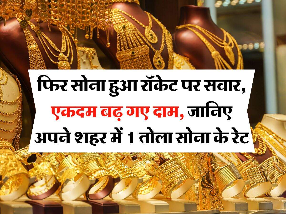 Gold Rate Hike : फिर सोना हुआ रॉकेट पर सवार, एकदम बढ़ गए दाम, जानिए अपने शहर में 1 तोला सोना के रेट