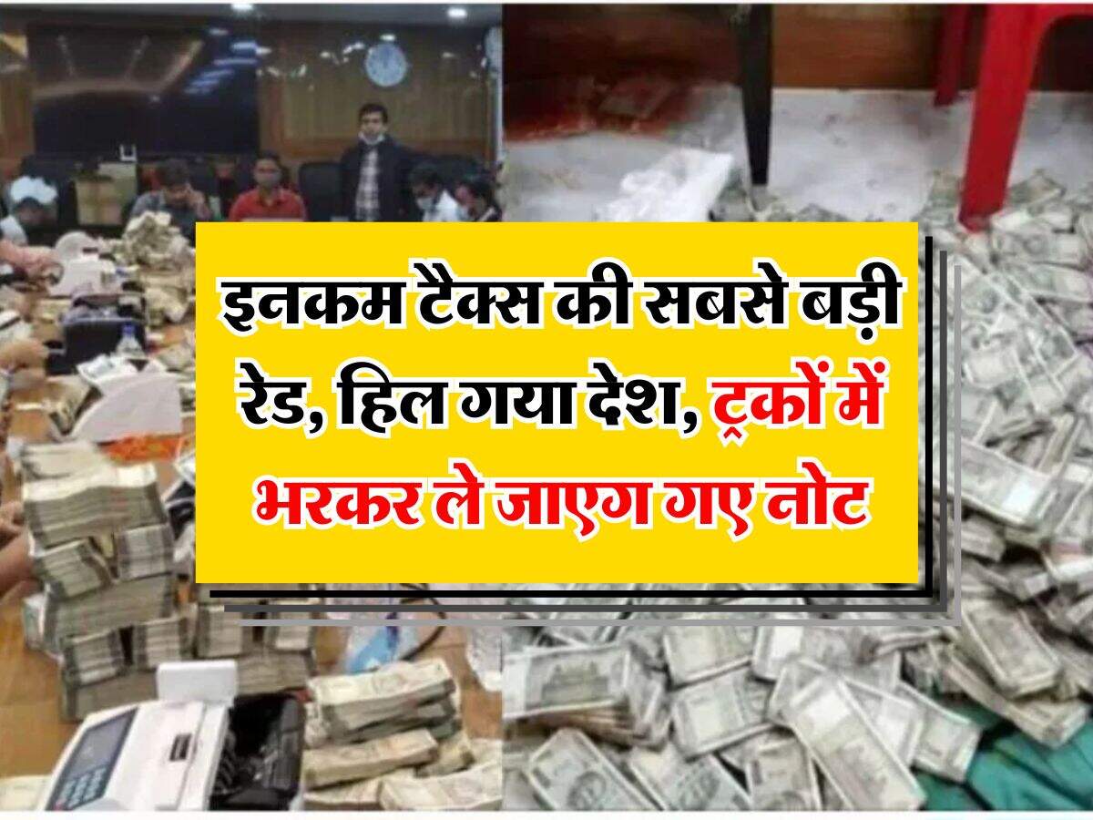 Income Tax Raid : इनकम टैक्स की सबसे बड़ी रेड, हिल गया देश, ट्रकों में भरकर ले जाएग गए नोट