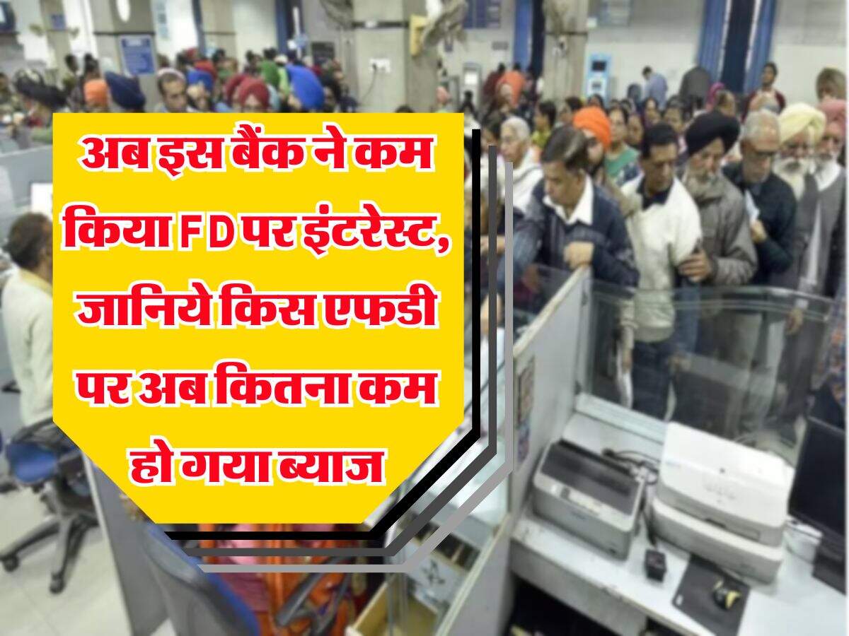 अब इस बैंक ने कम किया FD पर इंटरेस्ट, जानिये किस एफडी पर अब कितना कम हो गया ब्याज