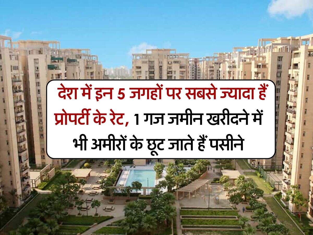 Property Rates In India : देश में पिछले कुछ ही समय में प्रोपर्टी के दाम तेजी से उछले हैं। अधिकतर शहरों में प्रोपर्टी के रेट (property rates) सातवें आसमान पर पहुंच चुके हैं। देश में 5 जगह तो ऐसी हैं, जहां पर 1 गज जमीन लेने में भी अमीरों के पसीने छूट जाते हैं। आइये जानते हैं इन जगहों के बारे में-