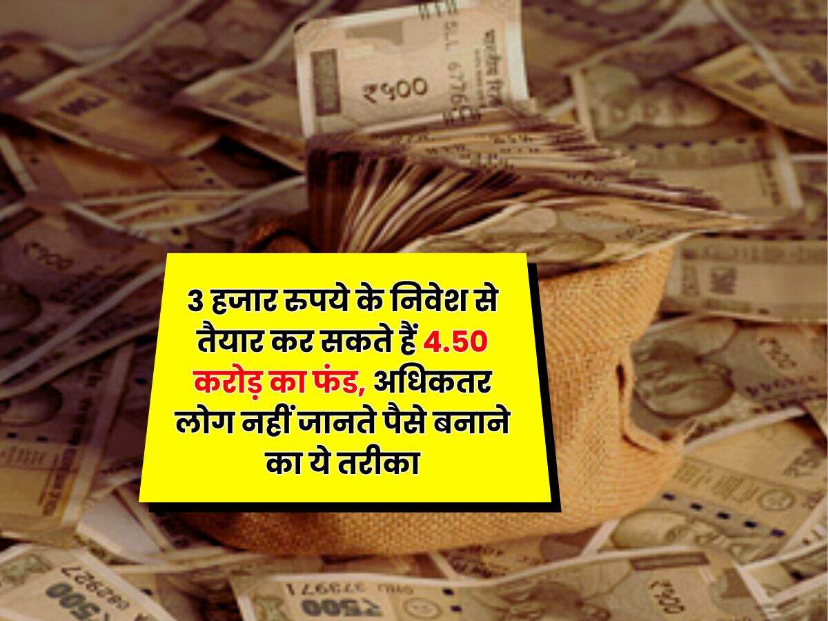 SIP : 3 हजार रुपये के निवेश से तैयार कर सकते हैं 4.50 करोड़ का फंड, अधिकतर लोग नहीं जानते पैसे बनाने का ये तरीका