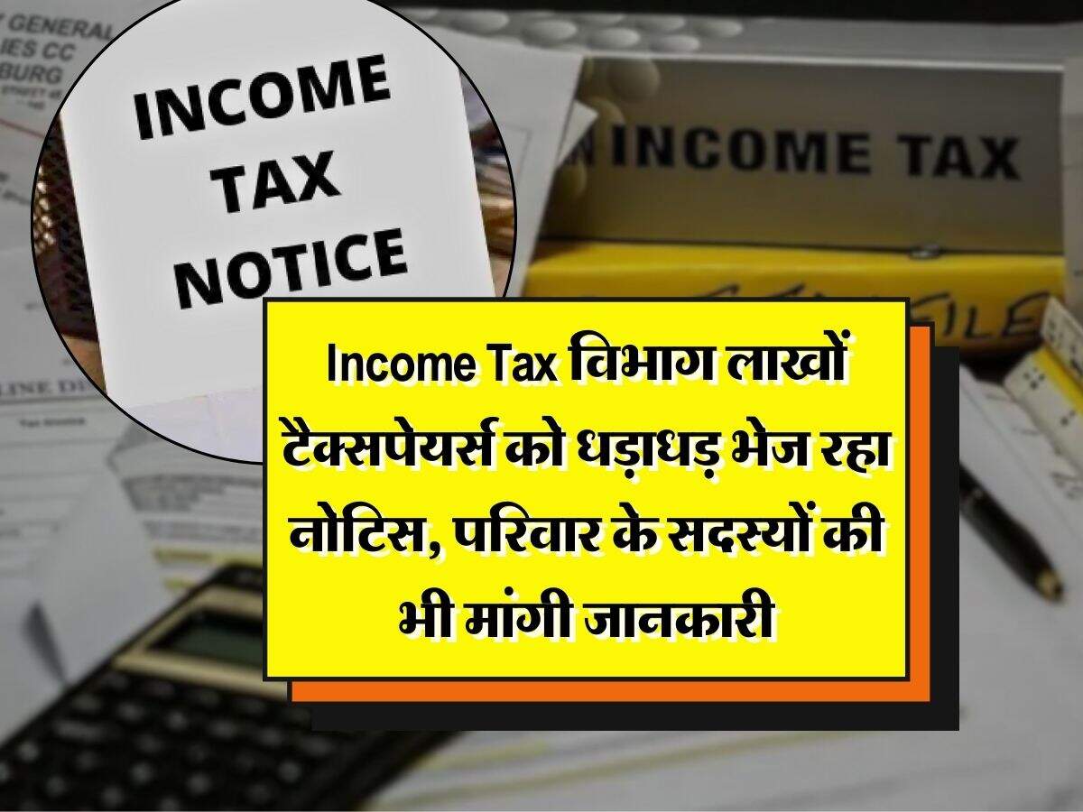 Income Tax विभाग लाखों टैक्सपेयर्स को धड़ाधड़ भेज रहा नोटिस, परिवार के सदस्यों की भी मांगी जानकारी