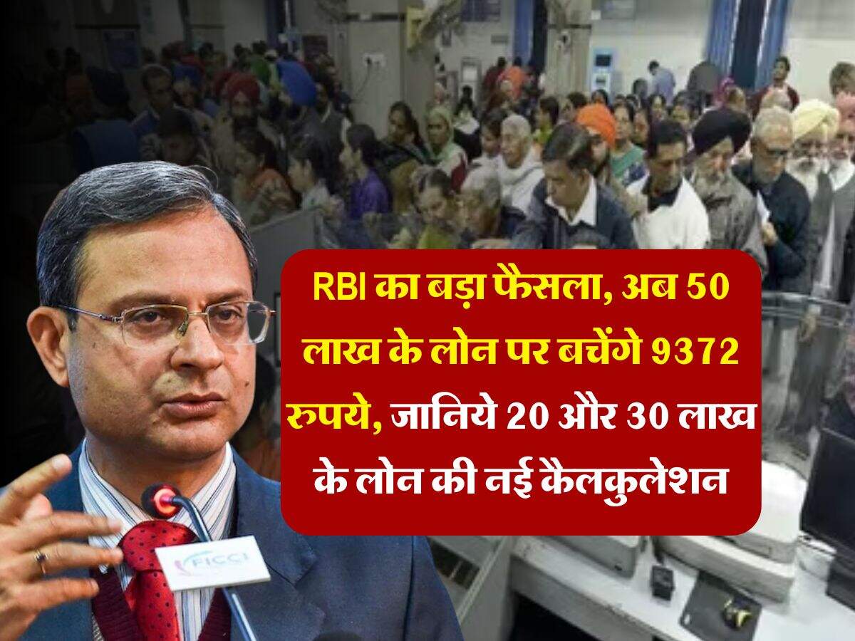 RBI का बड़ा फैसला, अब 50 लाख के लोन पर बचेंगे 9372 रुपये, जानिये 20 और 30 लाख के लोन की नई कैलकुलेशन