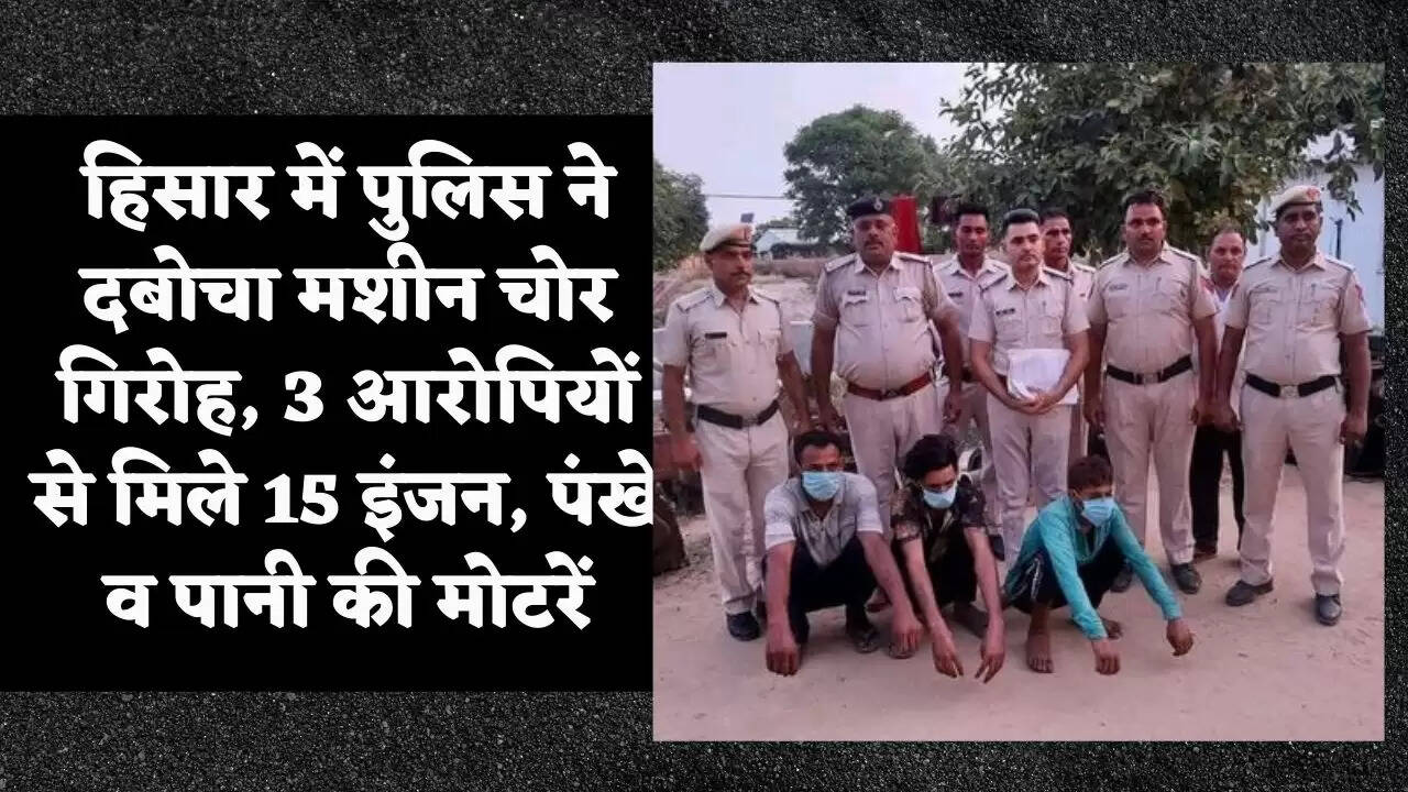 हिसार में पुलिस ने दबोचा मशीन चोर गिरोह, 3 आरोपियों से मिले 15 इंजन, पंखे व पानी की मोटरें
