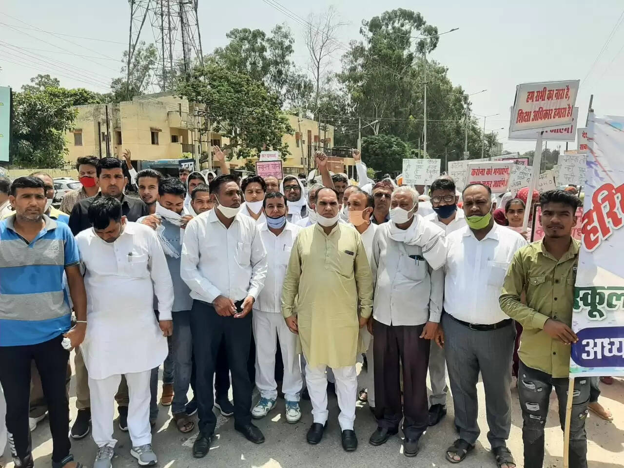 स्कूल खोलने की मांग को लेकर सड़कों पर उतरे अभिभावक व स्कूल संचालक