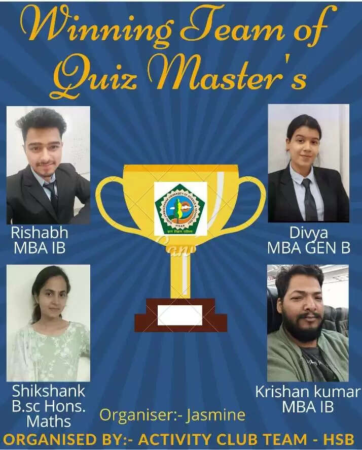 एचआर ब्रेकिंग न्यूज। हिसार के जीजेयू के हरियाणा स्कूल ऑफ बिजनेस में उघमशीलता विषय को फोकस करते हुए एक रचनात्मक दो दिवसीय ‘क्विज मास्टर’ प्रतियोगिता का आयोजन किया गया। प्रतियोगिता में विश्वविद्यालय के विभिन्न विभागों और सम्बद्ध महाविद्यालयों के विद्यार्थियों ने बढ़-चढ़ कर भाग लिया। प्रतियोगिता में गूगल फॉर्म के द्वारा एक ऑनलाइन टेस्ट लिया