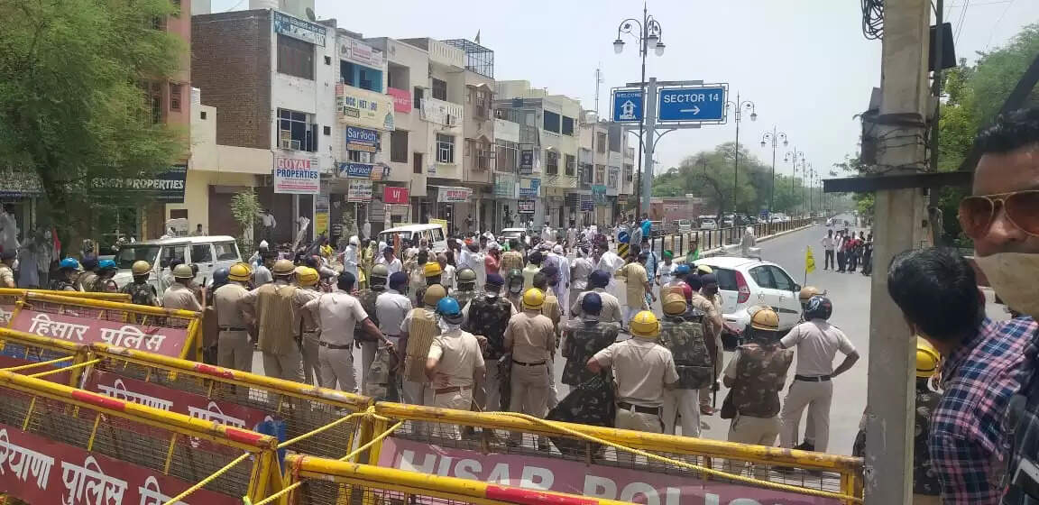 भाजपा नेताओं का विरोध करने पहुंचे किसानों को पुलिस ने कार्यालय के सामने रोक लिया। वहीं पर खड़े होकर किसान भाजपा और जजपा के खिलाफ नारेबाजी करते रहे। कार्यालय के जो भी बाहर आता उसे काले झंडे दिखाए जाते। करीब पांच बजे तक किसान दो नाकों पर नारेबाजी करते रहे।